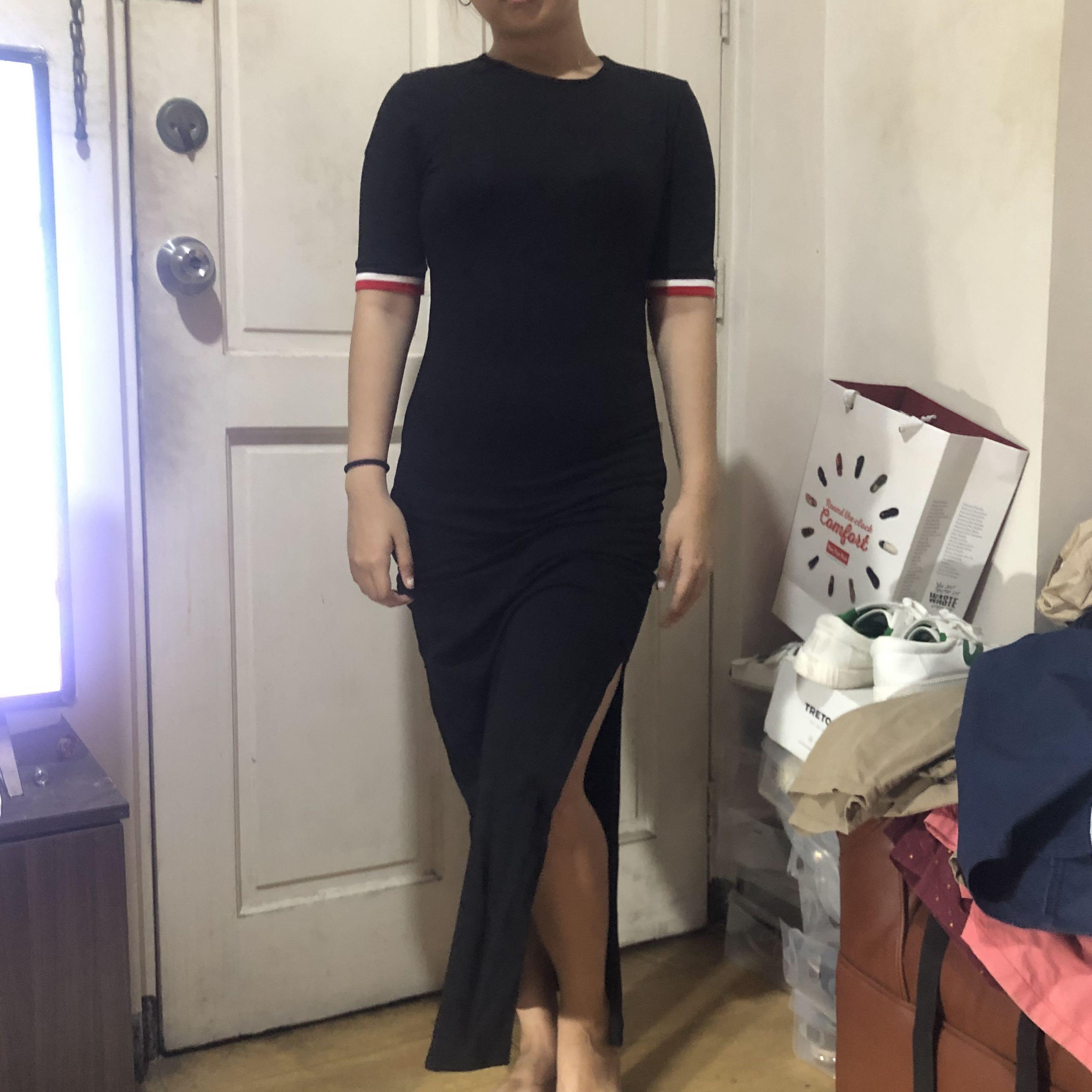Shein Black Long Dress With Slit Women S Fashion Dresses Sets Dresses On Carousell